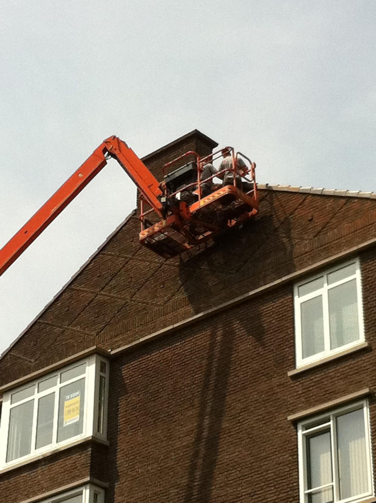 Wij hebben in samenwerking de dakpannen vervangen voor kantpannen en is de punt van de gevel geimpregneerd. Tevens is de loodvoeg van de schoorsteen vervangen.